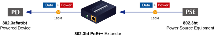 Bộ mở rộng PoE là một thành phần rất hữu ích trong các triển khai PoE được thiết kế để mở rộng phạm vi cấp nguồn và dữ liệu PoE vượt quá giới hạn Ethernet tiêu chuẩn 100 mét.