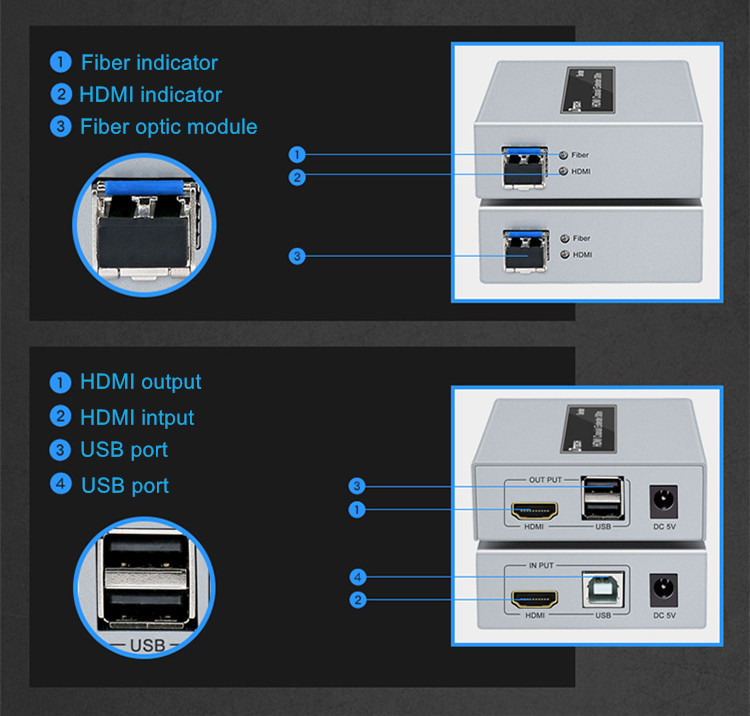 Tính năng chính bộ chuyển đổi 4K HDMI USB-KVM qua cáp quang DTECH DT-7052