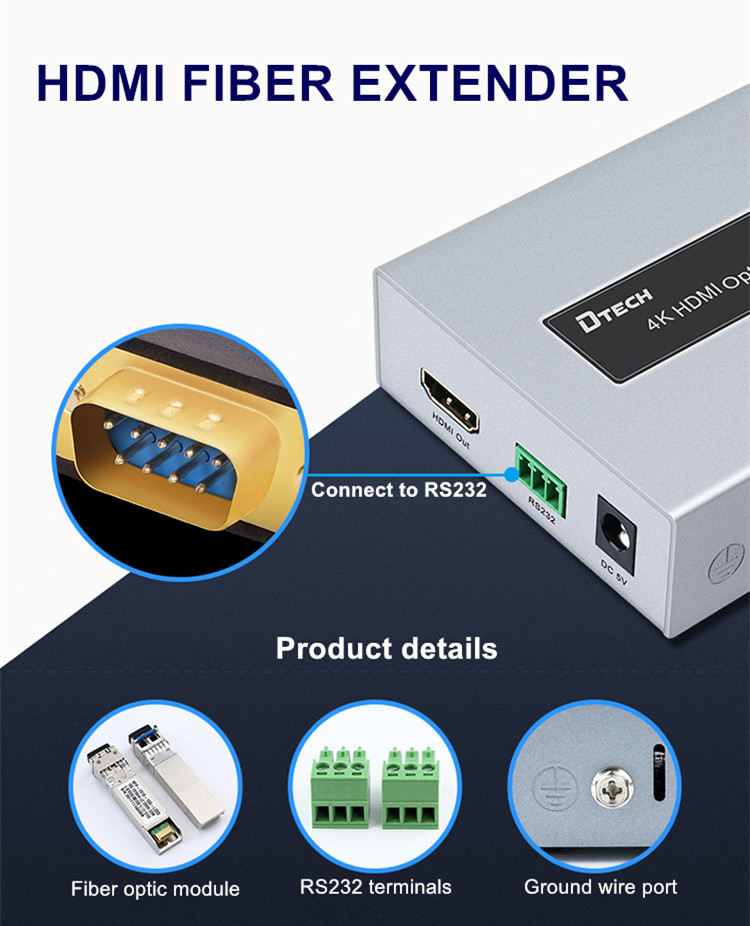 Bộ cmở rộng HDMI 4K qua cáp quang DTECH DT-7052A được thiết kế để truyền tín hiệu video 4K 3840*2160@30Hz trên khoảng cách xa, thông thường lên đến 20km (tiêu chuẩn). Bộ kéo dài 4K-HDMI DTECH DT-7052A là giải pháp truyền tín hiệu HDMI độ phân giải cao 4K ở khoảng cách xa qua cáp sợi quang, dùng trong các các ứng dụng như biển báo kỹ thuật số, hệ thống an ninh, tổ chức sự kiện âm thanh hình ảnh, quảng cáo kỹ thuật số và màn hình lớn.